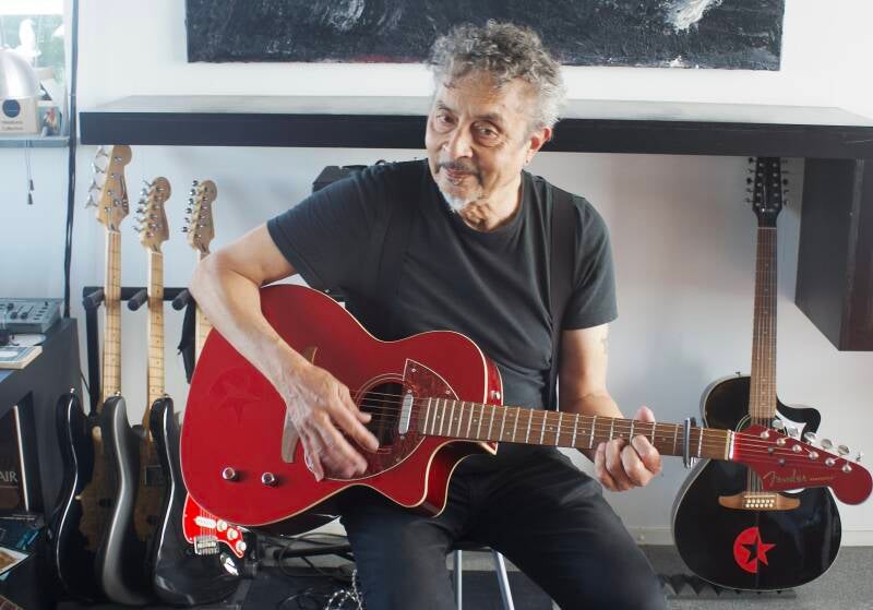 En nu, wat doe je nu? ‘Eigenlijk heb ik het best druk. Ik ben zijdelings met een paar decorontwerpen bezig. Sommige kunstenaars weten me nog steeds te vinden. Bovendien ben ik begonnen met het maken van een stripboek. Dat gaat over de jaren vijftig, toen mijn vader ook meubels maakte.’ Het boek vordert volgens hem langzaam maar gestaag. Een andere tak van sport is muziek. Op zijn elfde kreeg hij een gitaar en werd door zijn vader aangemoedigd gitaar te spelen. Op school zat hij in een bandje en speelde herrie, vindt hij nu. Vijftien jaar geleden begon hij met akoestische muziek en tegenwoordig treedt hij regelmatig op. Gitaren zijn sowieso zijn passie. Als hij de kans krijgt pimpt hij ze op, specifiek naar wat volgens hem past bij de gitarist die het instrument bij hem koopt. Dus geen tijd om achter de geraniums te zitten.