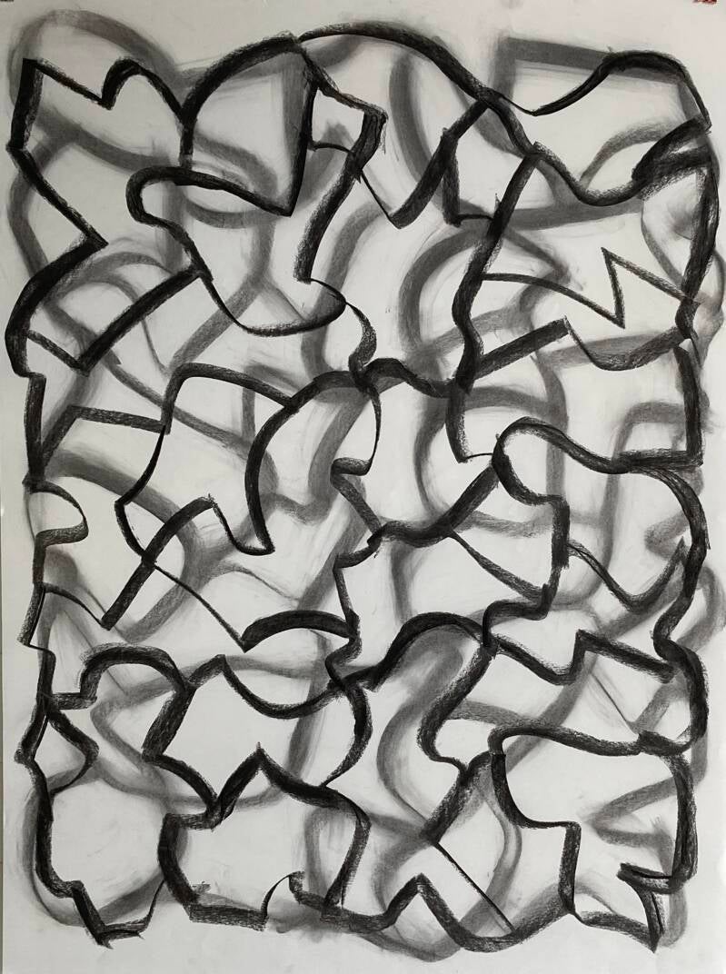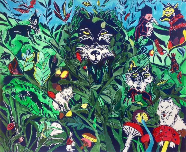 Het oerwoud rukt op - linosnede 60 x 80 cm