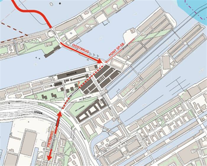 Amsterdam reserveert 100 miljoen euro voor de Oostbrug, die het Azartplein (KNSM-eiland) en het Hamerkwartier in Noord verbindt. Vervoerregio Amsterdam (waarin 14 gemeenten samenwerken op het gebied van verkeer en openbaar vervoer) legt er 75 miljoen euro bij. Dan is er nog 125 miljoen euro nodig. Voordat de bouw start in 2029, moet dat geld gevonden zijn. Tot die tijd werkt de gemeente de plannen verder uit, zodat de eerste Amsterdammers in 2032 over de Oostbrug kunnen fietsen. Tot de fietsbrug er is, komen er meer ponten bij: 5 tot 2030.