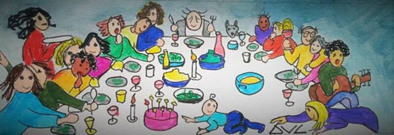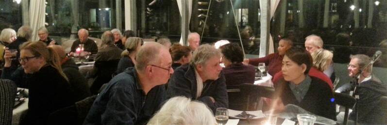 Tijdens het diner werd drie maal van plaats verwisseld, zodat eenieder na afloop een groot aantal deelnemers had ontmoet. Hélène en Rob, de koks, vrijwilligers (!) van ‘het Einde van de Wereld’ hadden een heerlijk drie-gangen menu bereid.
