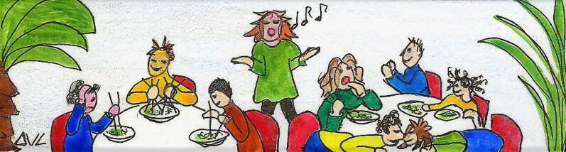 Er waren ruim 55 mensen aanwezig bij dit stadsdorpdiner. De koks van Het Einde van de Wereld, Hélène en Rob, hadden een heerlijk driegangendiner gemaakt. Na iedere gang werd er gezongen door een Java-eiland bewoner. Allereerst zong Marijn Huijers twee liederen waarbij ze zichzelf op de gitaar begeleidde. Daarna zong Marie José Jongstra twee liederen, en tot slot zong Horst Trautman een drinklied.