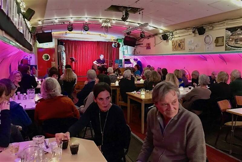 Tussen de gangen door konden we fijnproeven van kleinkunst van eigen bodem. Anna Brandjes zong over Amsterdam, we luisterden naar het gedicht 'Java-eiland, Amsterdam' van Albana Shala, en naar het lied 'Mijn eiland' door Wouter van der Heijden.